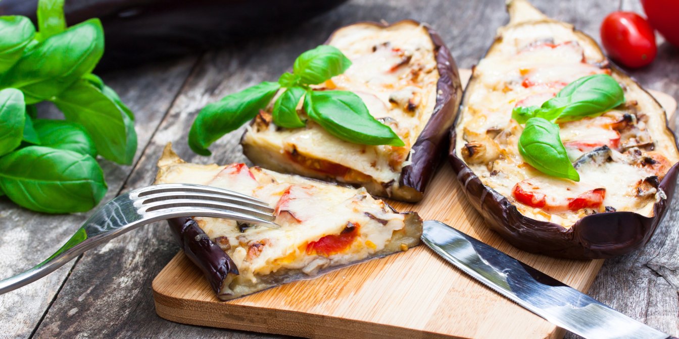 Оскільки баклажан містить мало вуглеводів і багато клітковини, він є гарним продуктом для людей з діабетом, а ще допоможе урізноманітнити раціон. Фарширований помідорами, сиром моцарела, цибулею та часником, цей овоч стане зіркою здорового меню.