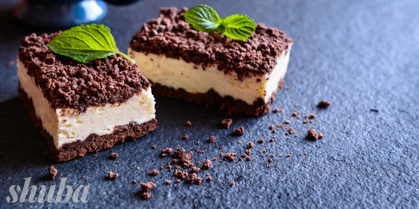 Це ідеальний рецепт для тих, хто любить каву та шоколад: вони вже є всередині цього десерту. Спочатку випікаємо брауні, наносимо на них крем тирамісу, а відтак посипаємо какао.