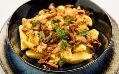 Картопля з лисичками — це класичне поєднання, яким ми готові насолоджуватися протягом усього сезону грибів. Він триває не так вже й довго (шкода!). Лисички не просто додають страві кольору, а й мають приємний горіховий смак, який підкреслює ніжну картоплю.