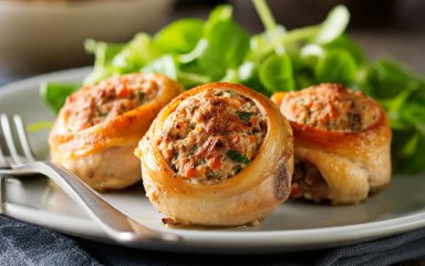 - Фаршировані курячі шиї смачно подавати як самостійну страву або разом з гарніром, наприклад, картопляним пюре або тушкованими овочами.