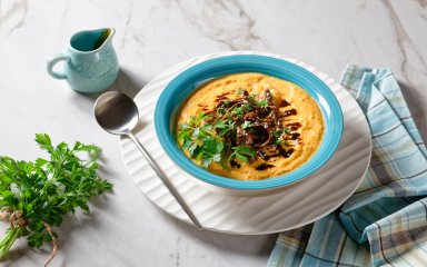 Всесвітньо відомий шеф-кухар Джеймі Олівер пропонує приготувати яскравий і сповнений вітамінів суп з кореня фенхелю та моркви. Вони запечуться, а потім переб’ються в блендері. На бажання додайте в кожну тарілку трохи вершків. Подавати суп Джеймі радить з коржиками на сухих дріжджах з ароматним насінням фенхелю.