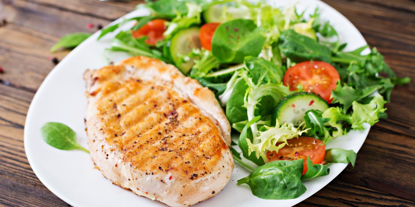 Куряче філе містить мало жиру, зате багато білка. Порція вареної курячої грудки без шкіри вагою 100 г містить 32 г білка, 158 калорій і 3 г жиру. Курятина також багата на антиоксиданти, вітаміни групи В і мінерали, такі як цинк, селен, фосфор і калій.