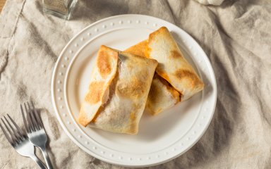 Лаваш — це тонкий коржик із пшеничного борошна, в який загортають різноманітну начинку: у нашому рецепті це нежирний кисломолочний сир (5-15%), зелень і помідори. Далі конвертики з лаваша, покриті яєчним кляром, запікаються до хрумкої скоринки в духовці, але ви можете обсмажити їх на сухій сковороді. Дієтичний сніданок з лаваша готовий!