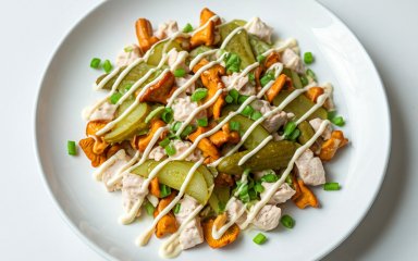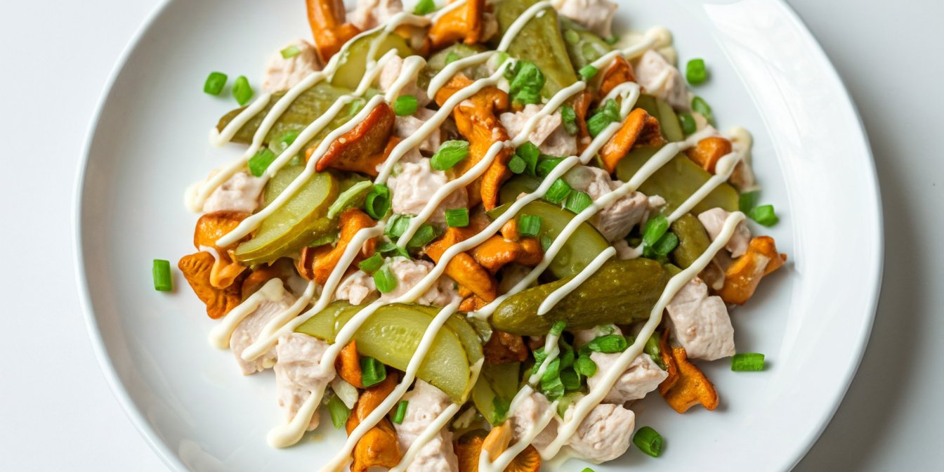 Салат «Іскра» для святкового столу пропонує збалансоване поєднання смаків — ніжна курка, пікантні огірки, яскраві лисички, вершковий сир. А ще він простий у приготуванні та має досить гнучкий рецепт.