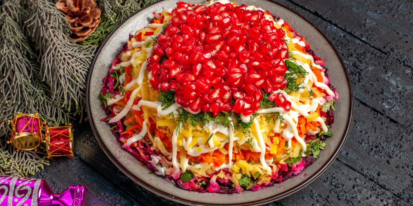 Гранат — один із найголовніших фруктів холодного сезону. Він символізує довголіття і достаток, тому салати з гранатом на Новий рік — це не просто смачно і вишукано, а й символічно.