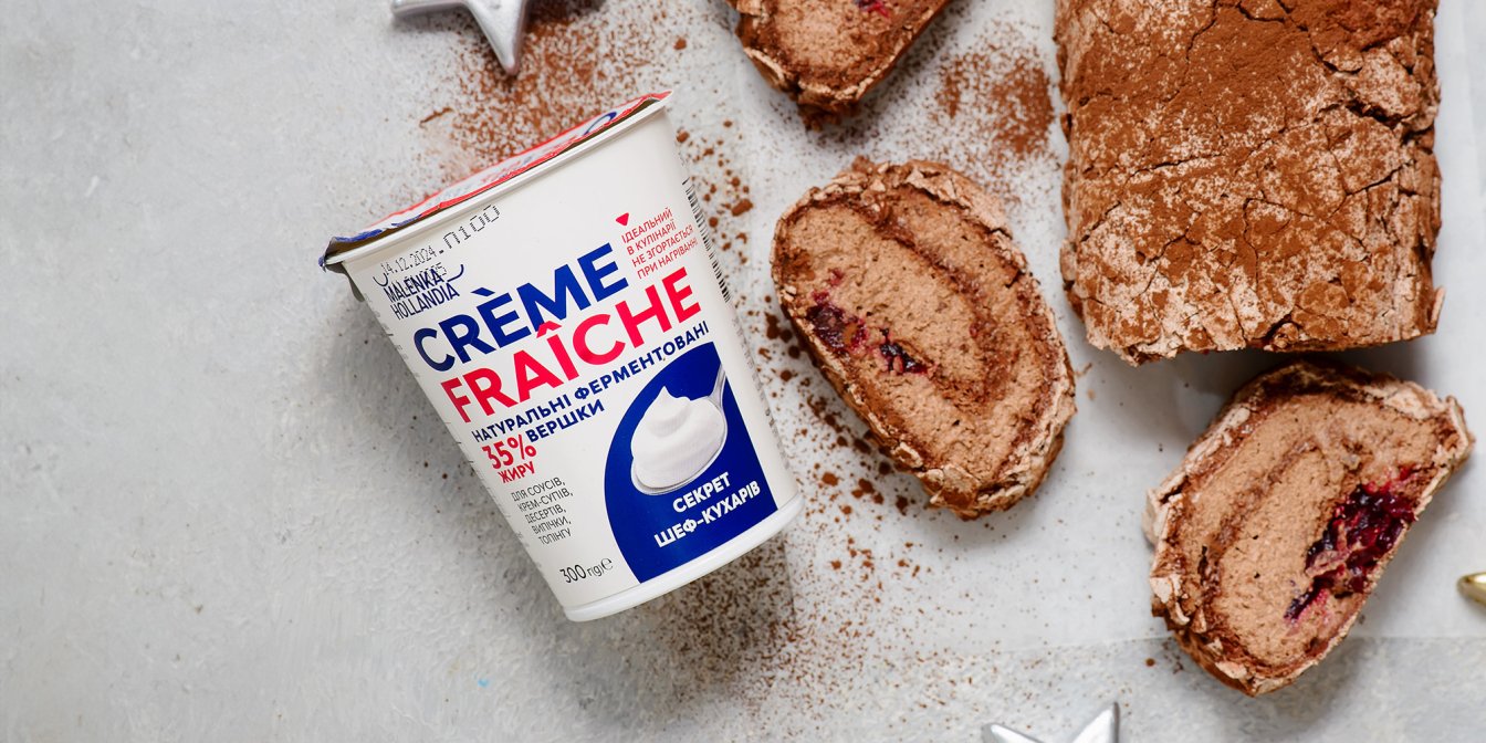 Потрібен рецепт десерту, який має розкішний смак, але готується дуже просто? Ми радимо меренговий рулет із шоколадом і вишнями! SHUBA саме протестувала рецепт, у якому використала крем-фреш 35%, ТМ Malenka Hollandia, щоб зробити крем для десерту. Розповідаємо про результати смачного експерименту.