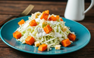 Хочете приготувати салат, який би сподобався і дітям, і дорослим? Зверніть увагу на рецепт з нового шкільного меню, розробленого під егідою шеф-кухаря Євгена Клопотенка. Це дуже смачний салат з пекінської капусти, гарбуза та сиру під сметанно-гірчичною заправкою.