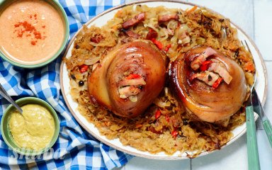 Запечена свиняча рулька з капустою — це класика європейської кухні, яку обожнюють у Німеччині, Чехії та, звісно, в Україні. Пряна, запечена до золотистого кольору шкірка чудово доповнює ніжне м’ясо, а тушкована капуста додає приємну кислинку. Це страва для довгих посиденьок і гучних застіль, де ніхто не поспішає та насолоджується кожним шматочком.