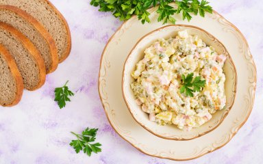 «Олів’є» — один із традиційних салатів столах українців, хоча і створив його не наш земляк, а француз Люсьєн Олів’є. Його салат за довгі роки дещо видозмінився. Наприклад, первісно замість ковбаси використовували рябчики, а огірки були свіжими, а не солоними. Була там і така екзотика, як ракові шийки, яловичий язик і каперси.