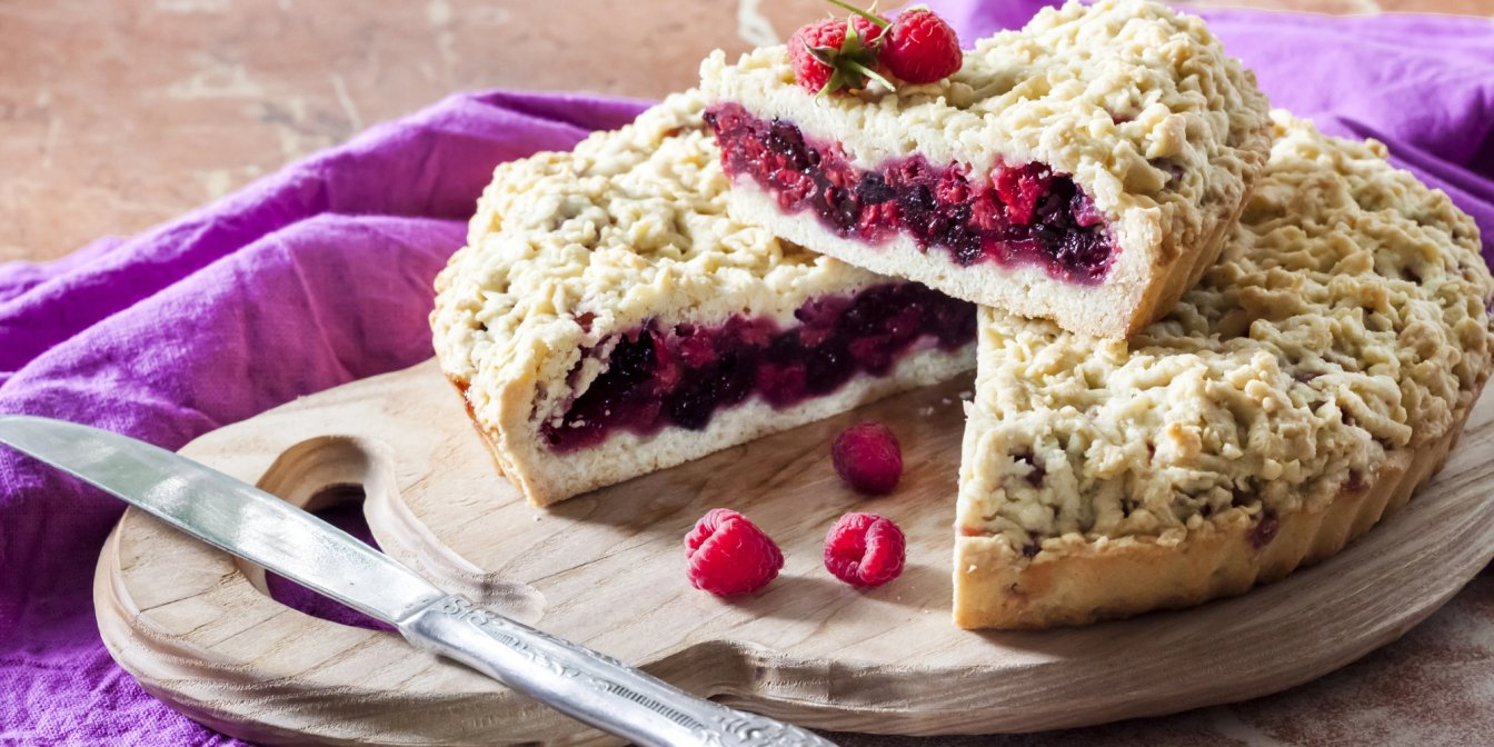 Готують такі пироги зі свіжими та замороженими ягодами, яблуками, джемами та вареннями, наприклад, пісний тертий пиріг, а також з іншими несолодкими начинками.
