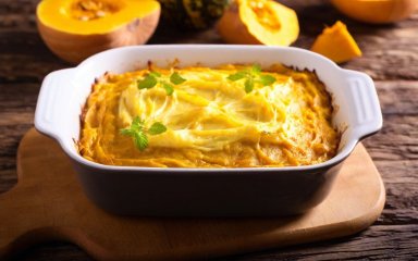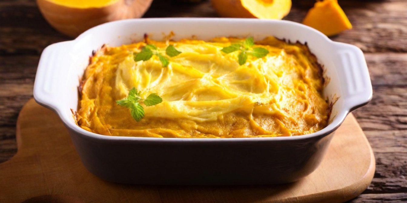 Гарбуз — універсальний продукт. Його можна покласти не тільки в кашу чи суп, а й приготувати з ним смачну м’ясну запіканку.