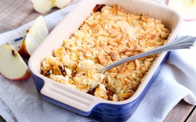 Чемпіоном за кількістю яблучної начинки є англійський крамбл. А хто, як не Джеймі Олівер, знає про смачний крамбл все і навіть більше? Подавати свій пиріг шеф-кухар радить з теплим заварним кремом, кулькою ванільного морозива або з грецьким йогуртом.
