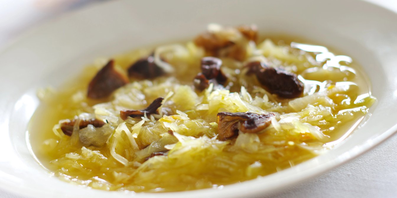 Капусняк — перша страва з історією. Колись його готували в кожній українській хаті, адже квашена капуста та гриби були доступні цілий рік. Насичений, з приємною кислинкою, цей суп може бути пісним або на м’ясному бульйоні.
