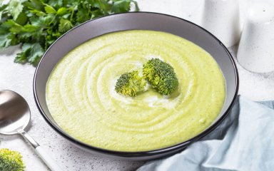 Цей овочевий суп-пюре — легкий, корисний і низькокалорійний. Він має ніжну густу текстуру, готується з мінімуму інгредієнтів і містить багато вітамінів. Дієтичний суп можна готувати на воді або овочевому бульйоні, а для ніжності додавати трохи вершків або рослинного молока.