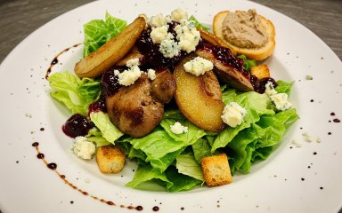 Салати з курячою печінкою можуть стати зіркою вечора, якщо гарно подати їх і доповнити смачними додатками. Шефи ресторану «Le Grill» (м. Дніпро) розповіли нам, як вони частують своїх гостей салатом  із курячої печінки з карамелізованою грушею.