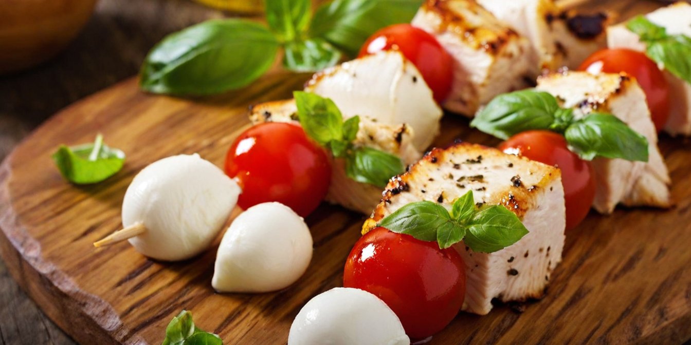 Рецепт курячих шашличків «Маргарита» з моцарелою та чері