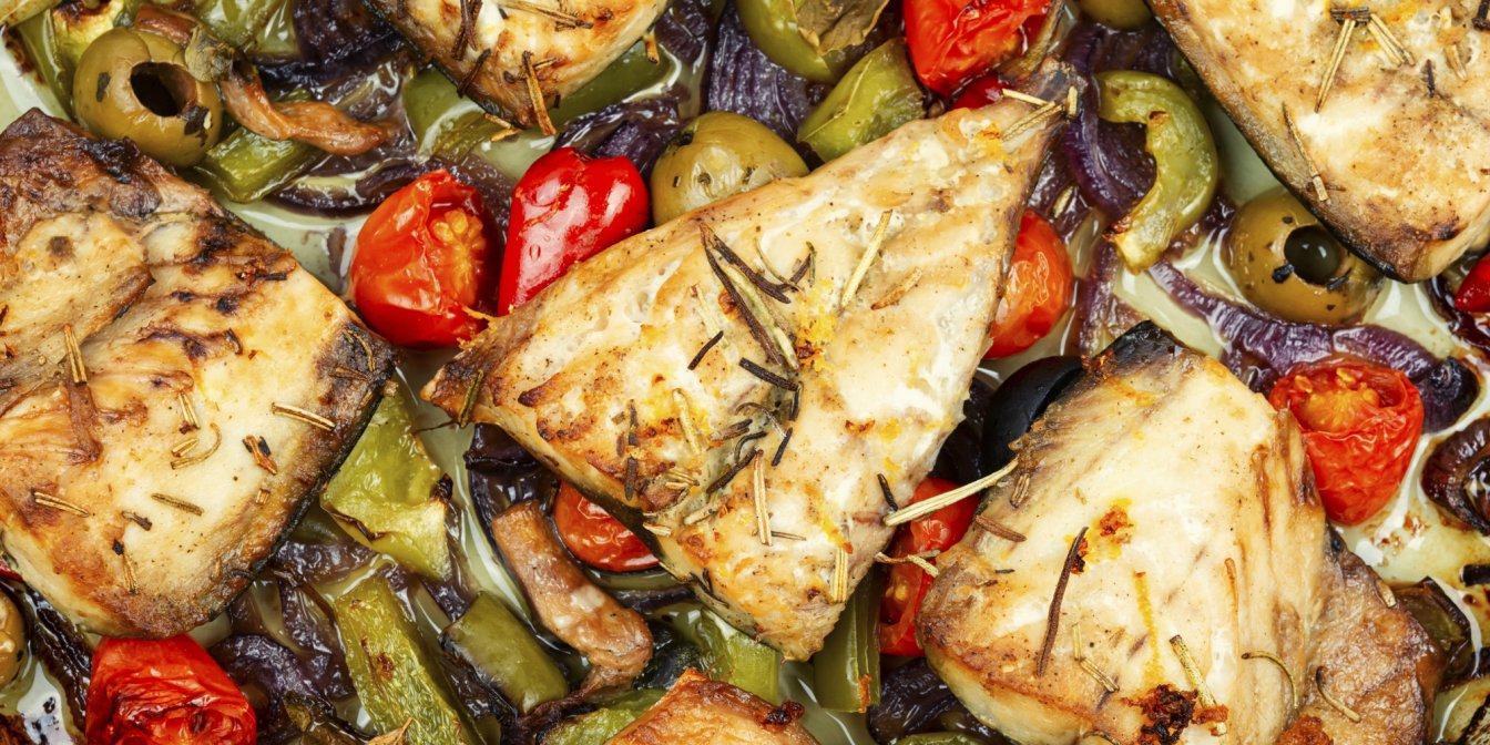 - запечена скумбрія з овочами;