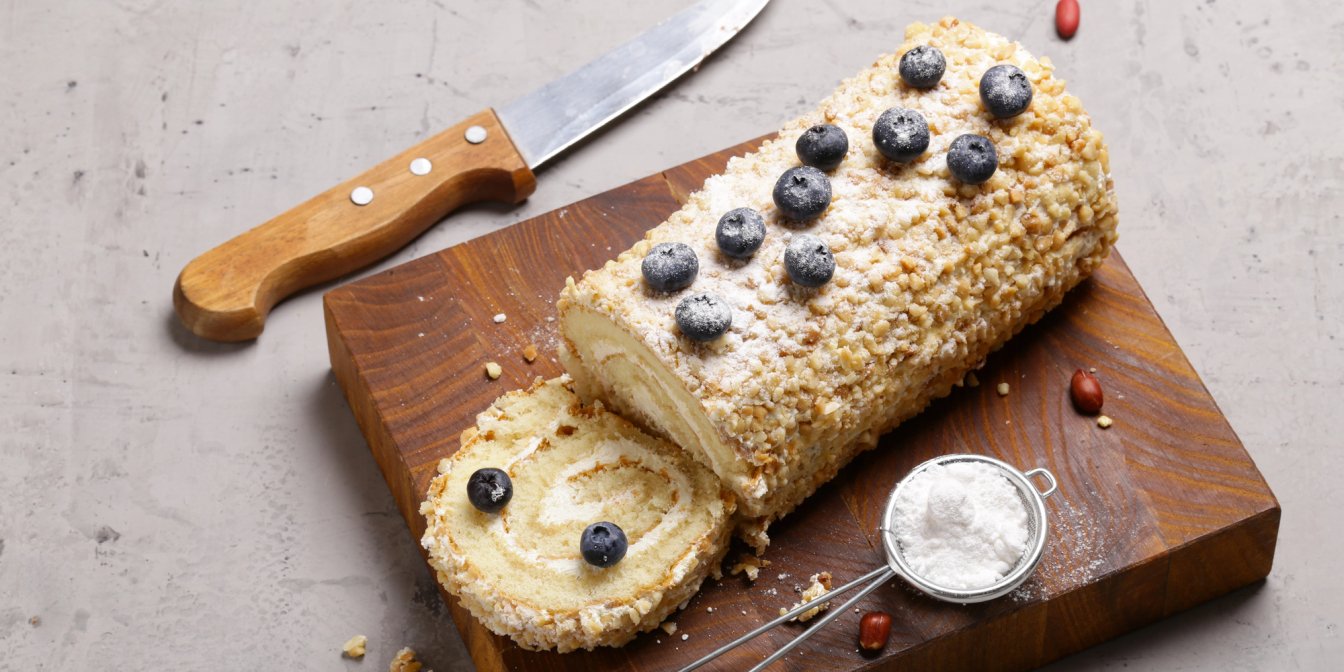Основа рулету з арахісом — легкий бісквіт, який після випікання потрібно змастити кремом, а потім акуратно згорнути. Щоб він не тріскав, важливо дотримуватися кількох правил: