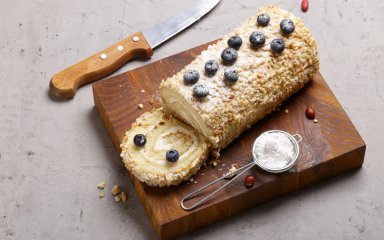 Цей арахісовий рулет простий у приготуванні, зрозумілий, але при цьому з характером. Ніжне бісквітне тісто м’яко обгортає начинку з вареного згущеного молока, а верхівка прикрашається хрумким арахісом. Не втрачай дорогоцінні хвилини на роздуми — готуй цей рулет з арахісом за простим покроковим рецептом.