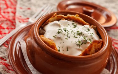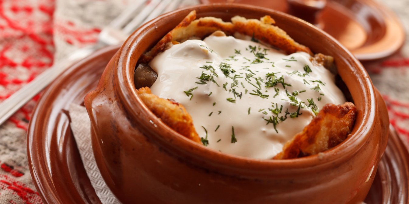 Ці деруни готуємо в маленьких горщичках або у формі для запікання, додавши сметану або вершки та обсмажені грибочки. Можна спробувати й деруни з фаршем, які від такого способу приготування стануть ніжнішими.