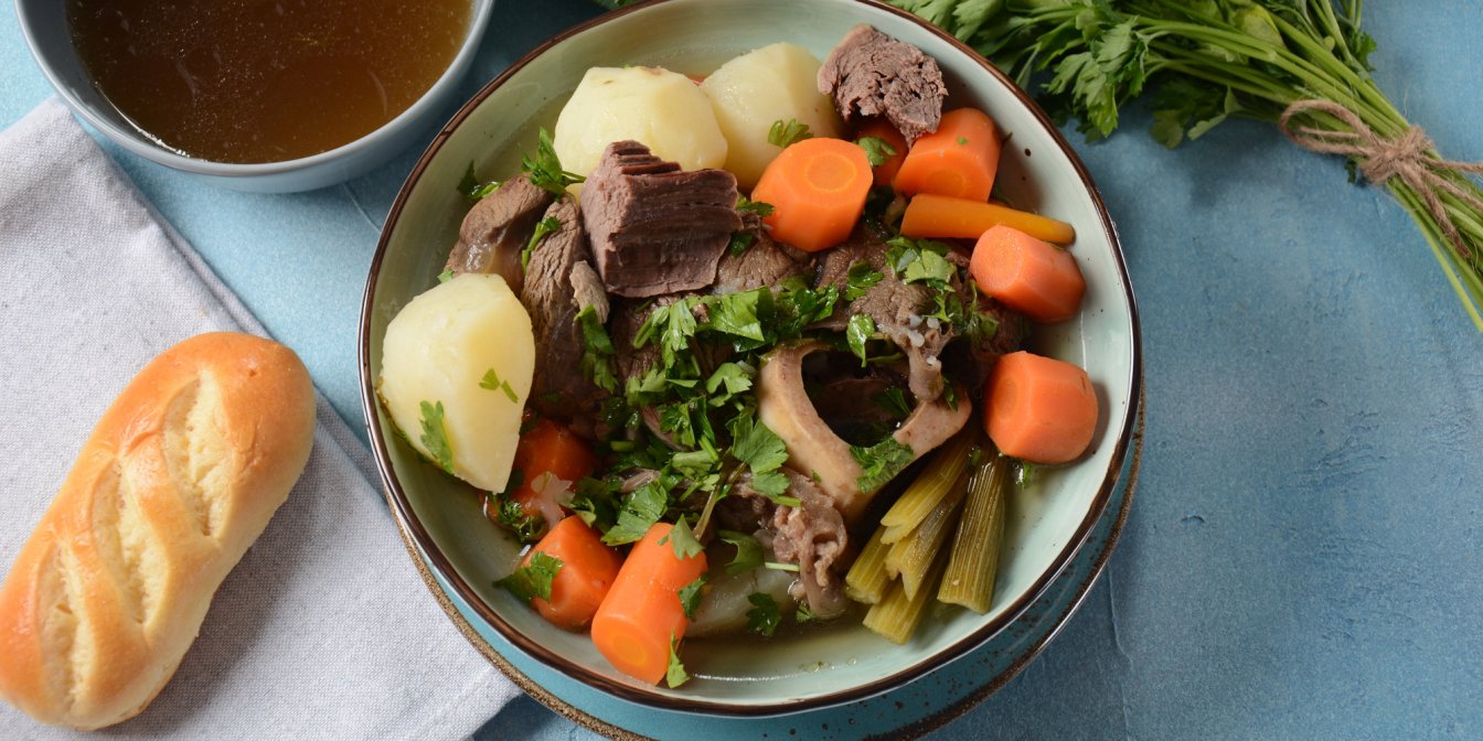 Потофе (pot-au-feu) дослівно означає «горщик на вогні». Це одна з найвідоміших страв французької кухні. Її готують із яловичини на кістці, овочів та спецій, довго томлячи на повільному вогні. Результат — насичений яловичий бульйон і м’яке, соковите м’ясо, яке подають окремо з овочами та гострим соусом.