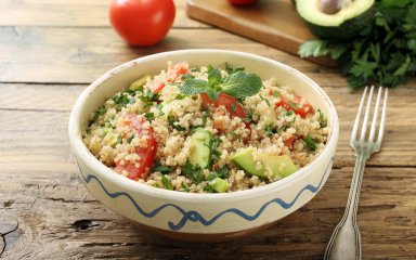 Салат з кіноа має ідеальний баланс — крупа додає ситності, овочі дарують свіжість, а заправка з олії підкреслює всі смаки. Його можна їсти як самостійну страву або як гарнір до риби чи м’яса. А ще такий корисний салат чудово зберігається в холодильнику — стане ідеальним варіантом для ланч-боксу.