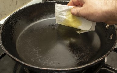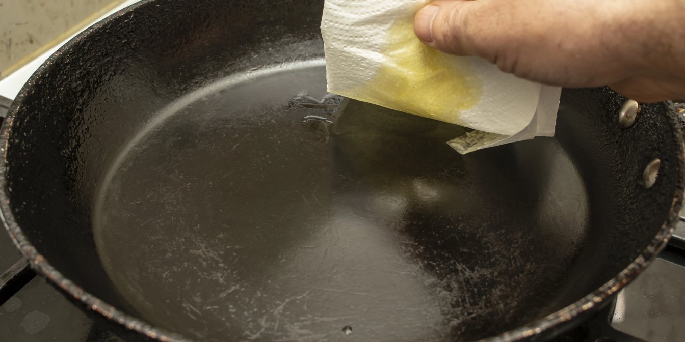 Волога — головна причина появи іржі. Чисту й суху поверхню чавунної сковороди радять змастити 2-3 краплями олії.