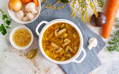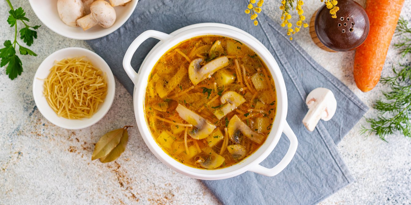 Готуємо суп з печерицями та смаженою вермішеллю