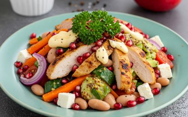Салати з гранатом — то любов! А якщо додати туди ще квасольки, моркви по-корейськи та діжонської гірчиці, то аж настрій від такої смакоти покращиться. Приготуй салат з куркою і гранатом «Світанок» і порівняй його з «Гранатовим браслетом». Котрий із них тобі більше до душі?