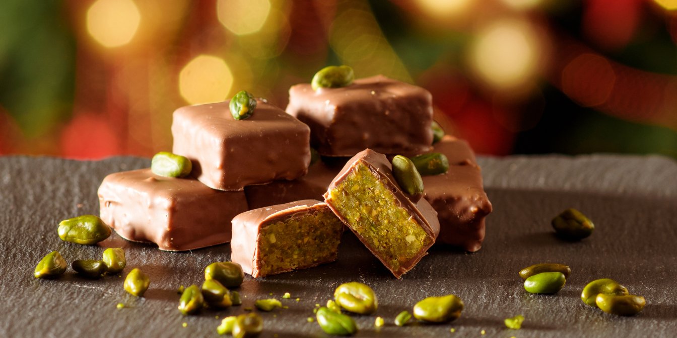 Для цукерок найкраще вибрати якісний чорний шоколад, а начинку зробити з тіста кадаїф та фісташкової пасти.