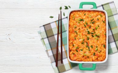 Хочеться суші, до того ж багато і швидко? Тоді готуй суші-запіканку з крабовими паличками! Можна використати для неї хоч би й учорашній рис, додавши крабові палички та креветкову пасту. Готується швидко, а смакує як суші!