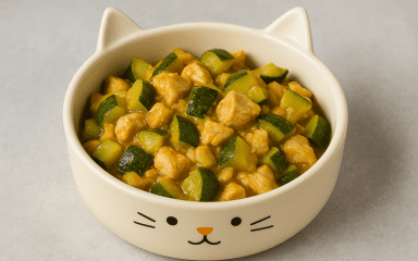Годуєш кота натуральною їжею? Тоді весь час треба вигадувати хитрощі, щоб згодувати йому трохи вітамінів. Пропонуємо пригостити твого улюбленця смачною стравою з м’яса — кроликом з кабачком. М’ясо кролика ніжне, поживне і легко засвоюється. А в поєднанні з кабачком та петрушкою це чудова вітамінна страва.