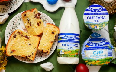 Для святкового крафіна радимо використати молочні продукти від ПРОСТОНАШЕ, вони ідеальні для сирної випічки. Нам потрібні молоко 2,5% та сметана 15% для тіста, і кисломолочний сир 5% для начинки.