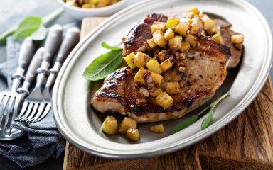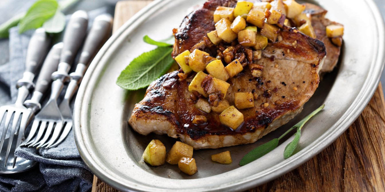 Ідеально підсмажені свинячі відбивні з яблучним пюре, заправлені соусом вінегрет із цибулею. Запаморочливо, еге ж? Розповідаємо, як приготувати таку смакоту вдома.