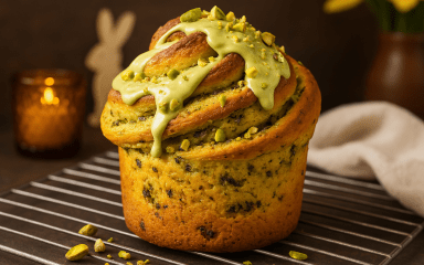 Схоже, знайшовся гідний конкурент крафінам із заварним кремом та навіть крафінам із шоколадом. І це крафіни з фісташковою пастою! Не важко уявити, якою ароматною буде така великодня випічка. А пекти їх — суцільне задоволення: тісто замішуємо на швидкодіючих сухих дріжджах і молоці, а для начинки потрібна готова фісташкова паста і трохи масла.