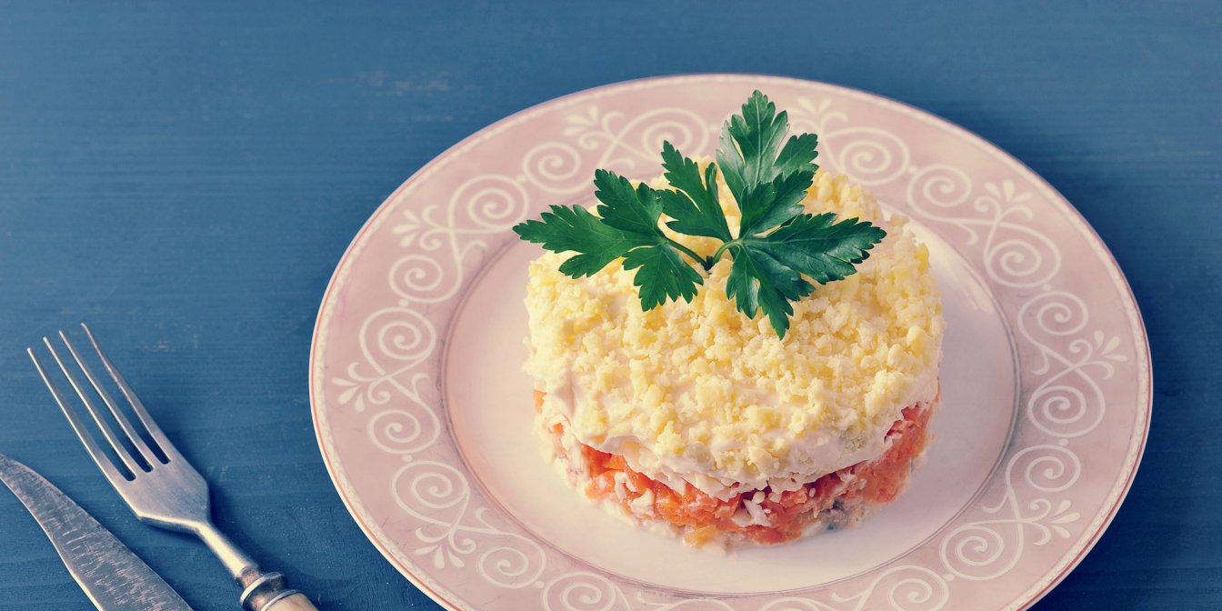 Далі — терта морква та шар майонезу.