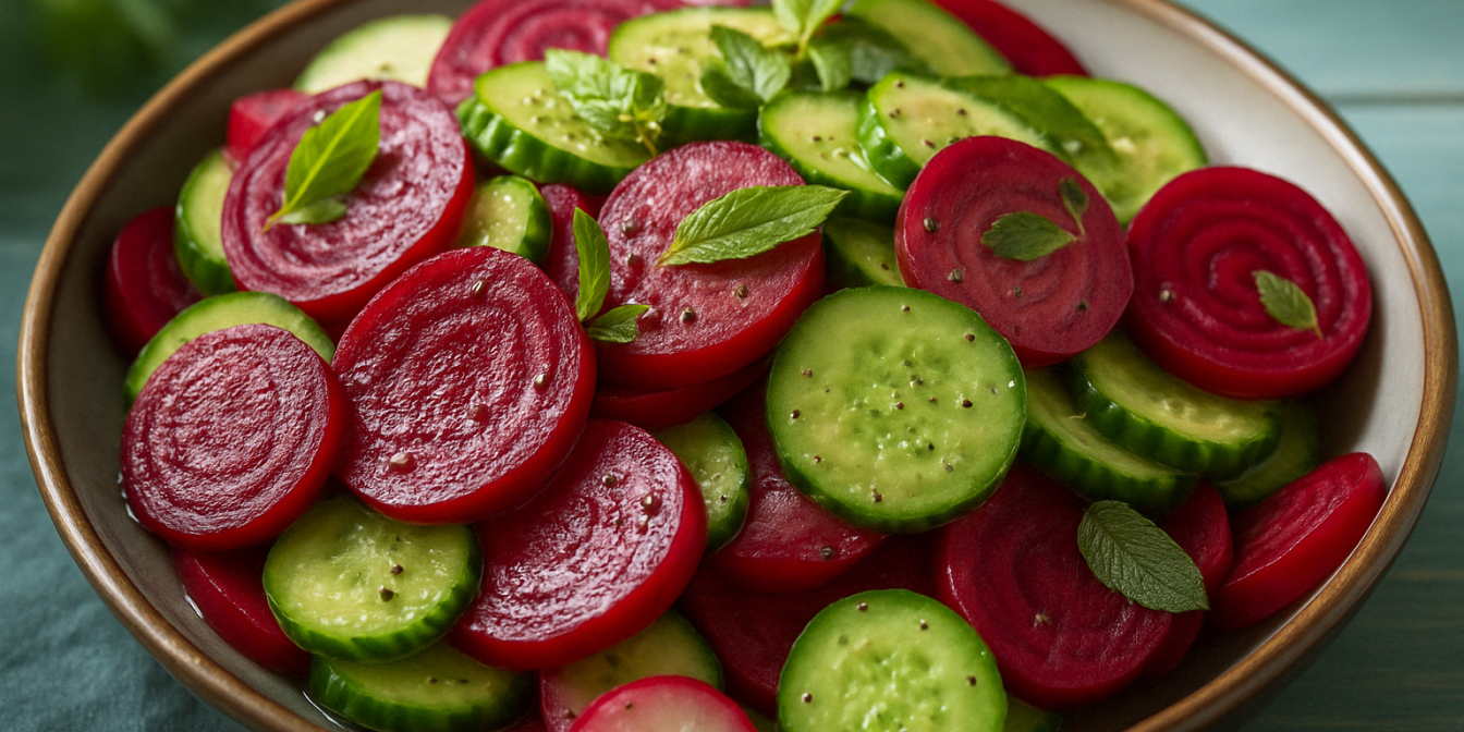 Свіжий салат з огірків і буряка смакуватиме, як легкий обід, особливо в поєднанні зі скибочкою цільнозернового хліба.