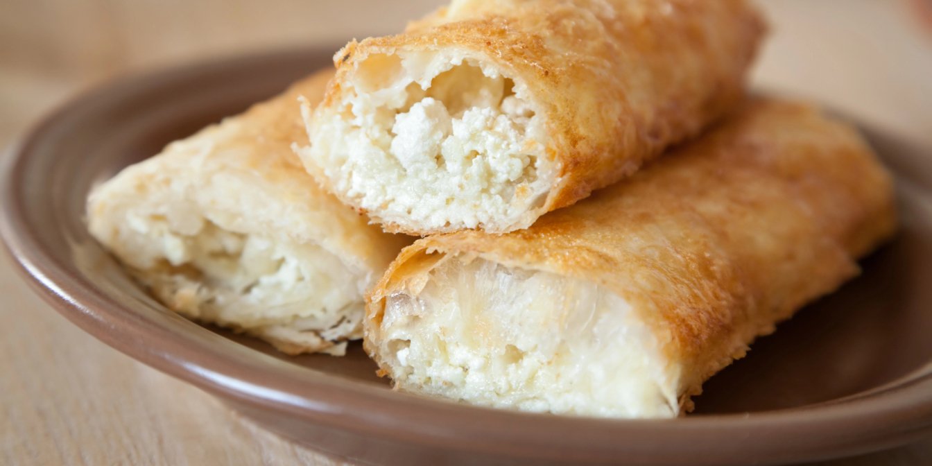 Тож візьми два листи лаваша без додатків і розріж кожен на квадрати або прямокутники. Потім змасти начинкою, скрути в трубочку і все! Що в начинці? Пропонуємо сулугуні або моцарелу, а ще знадобиться жирний кисломолочний сир і яйця.