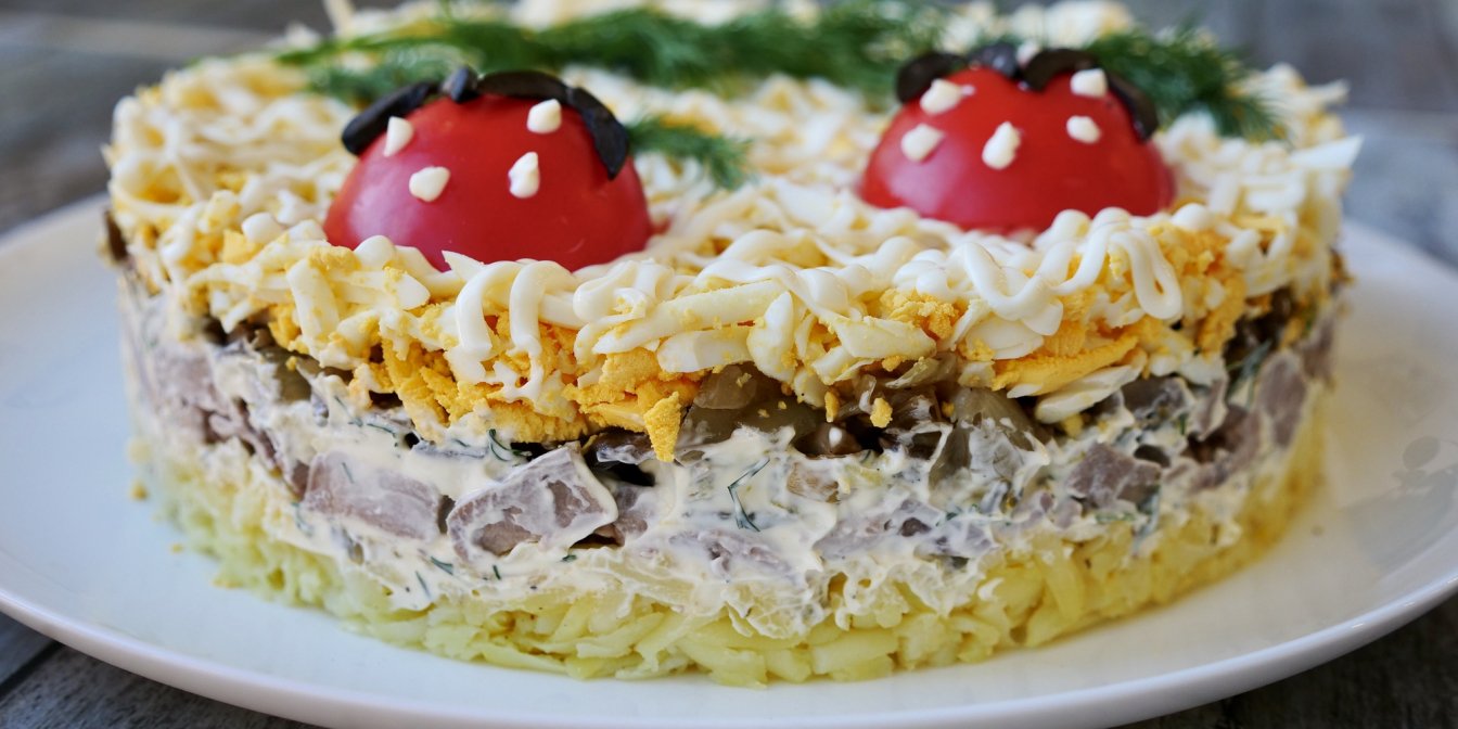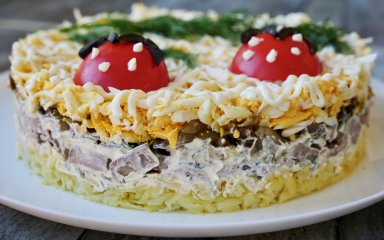 Салат «Багатий купець» з яловичим язиком і печерицями — популярний святковий рецепт