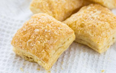 Розкачай тісто в прямокутник завтовшки 1 см. Посип тісто цукром (2-3 ст. л.) і обережно розподіли його по всьому тісту. Зверху акуратно пройдися качалкою, щоб цукор потрапив у тісто.