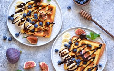Також прекрасні варіанти для сніданку — вафлі на рисовому борошні, вівсяні вафлі з яблуком та шоколадні вафлі гофре з бананом.