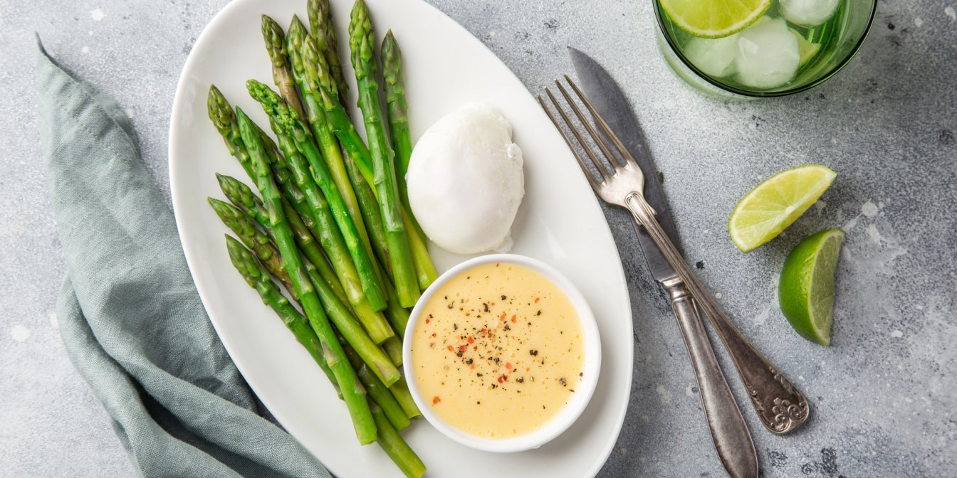 Цей рецепт знайшли у нашої експертки, фудблогерки Блог «Готуємо з Яною». Етапів приготування буде три: спочатку зробимо ніжний голландський соус (голландез), потім відваримо спаржу та обсмажимо на маслі, а прикрасимо цю смакоту яйцем пашот.