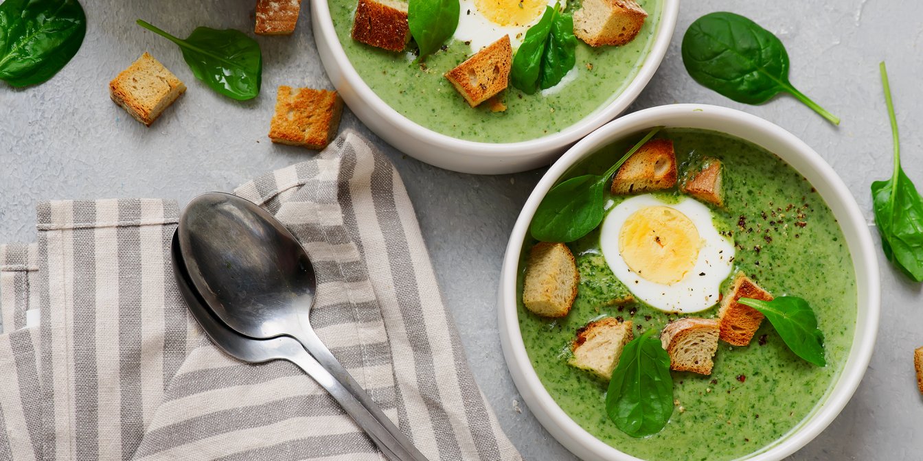 Шпинат просто створений для крем-супів! Переконайся в цьому, приготувавши славнозвісну фінську страву — крем-суп зі шпинату. Нічого зайвого — лише шпинат, цибуля, вершки та трохи борошна, які разом творять ніжний, стовідсотково весняний смак!
