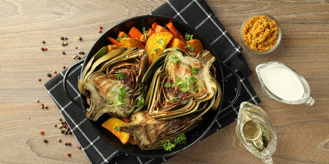 Найпростіший спосіб — зварити або приготувати овочі на парі, подати з соусом на кшталт айолі, розтопленим вершковим маслом з лимоном або бальзамічним оцтом. Але якщо хочеш більшого — можна запекти артишоки в духовці з часником, травами та сиром. А Ярославський пропонує спочатку відварити артишоки з овочами, а потім обсмажити. Ідеально до вина або як частина антипасті. Нумо дегустувати!