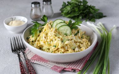 Справжня насолода для тих, хто любить свіжі, легкі смаки — саме так можна описати цей салат, який треба заправляти сметаною. Завдяки яйцям, салат «Одеса» зі свіжим огірком і твердим сиром виходить дуже ситним і поживним. Додай трохи консервованої кукурудзи — вона чудово поєднується з іншими інгредієнтами.