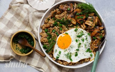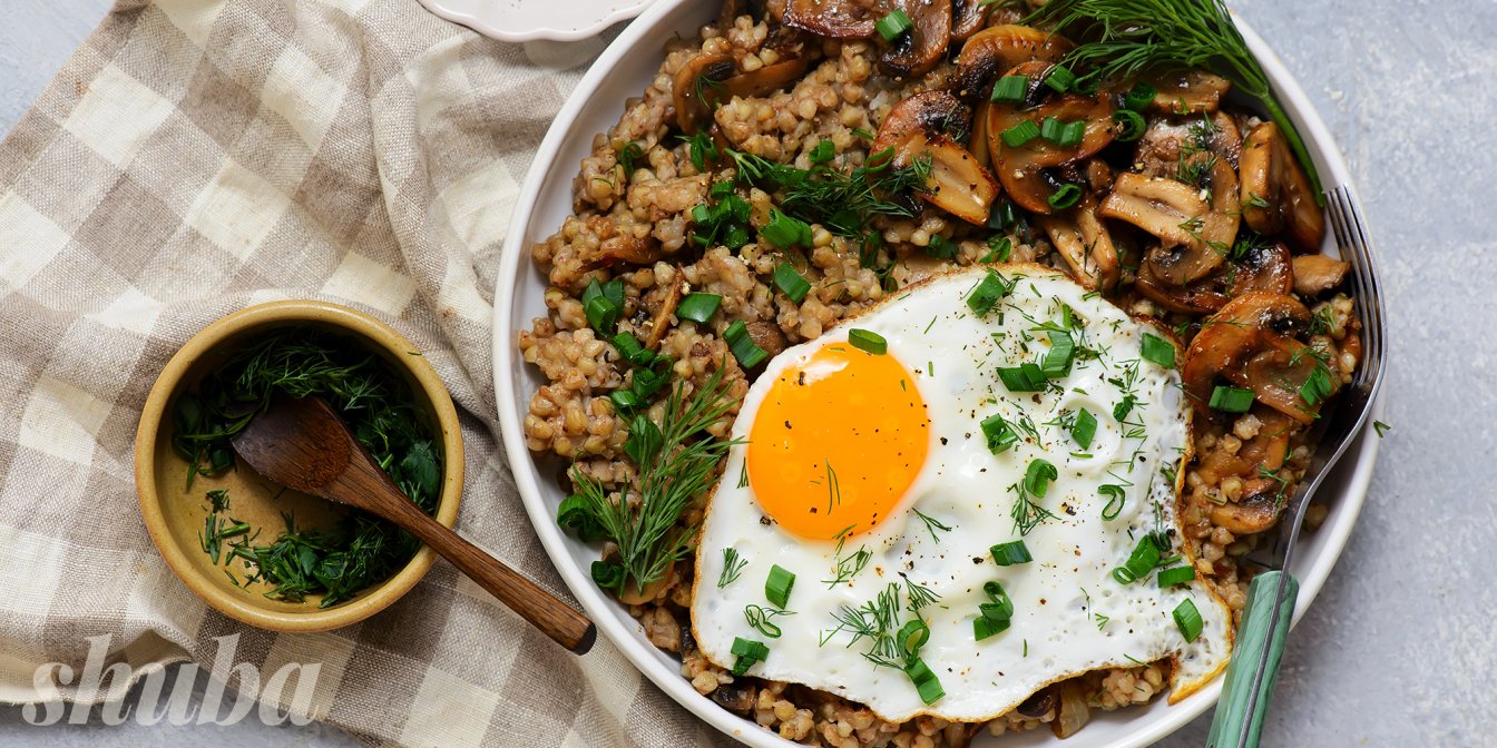 Зазвичай гречку з овочами або грибами ми готуємо, коли потрібен швидкий гарнір. А наш апетитний боул є повноцінним, поєднує в собі корисну гречку, смажені печериці та цибулю, корисні білки з яйця. Страва хоч і проста, але її нова подача тобі сподобається!