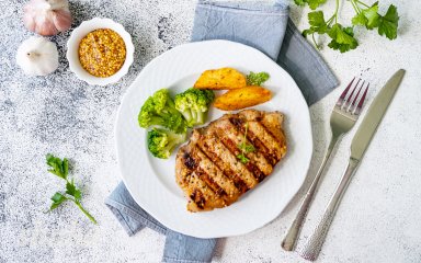 Якщо в тебе є електричний гриль, обов’язково спробуй приготувати свинячий стейк — страва проста, але ефектна. Крім часу на маринування, сам процес займе трохи більш як 10 хвилин. І результат тебе точно здивує.