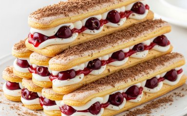 Справді чекали, адже цей красивий десерт без випікання відрізняється своїм ефектним виглядом. Збирається ця «Монастирська хата» без випікання з печива савоярді, яке просочується ніжним кремом з кисломолочного або вершкового сиру. Щоб десерт нагадував оригінал, додай вишневе варення. Хоча підійде будь-яке інше з кислинкою.