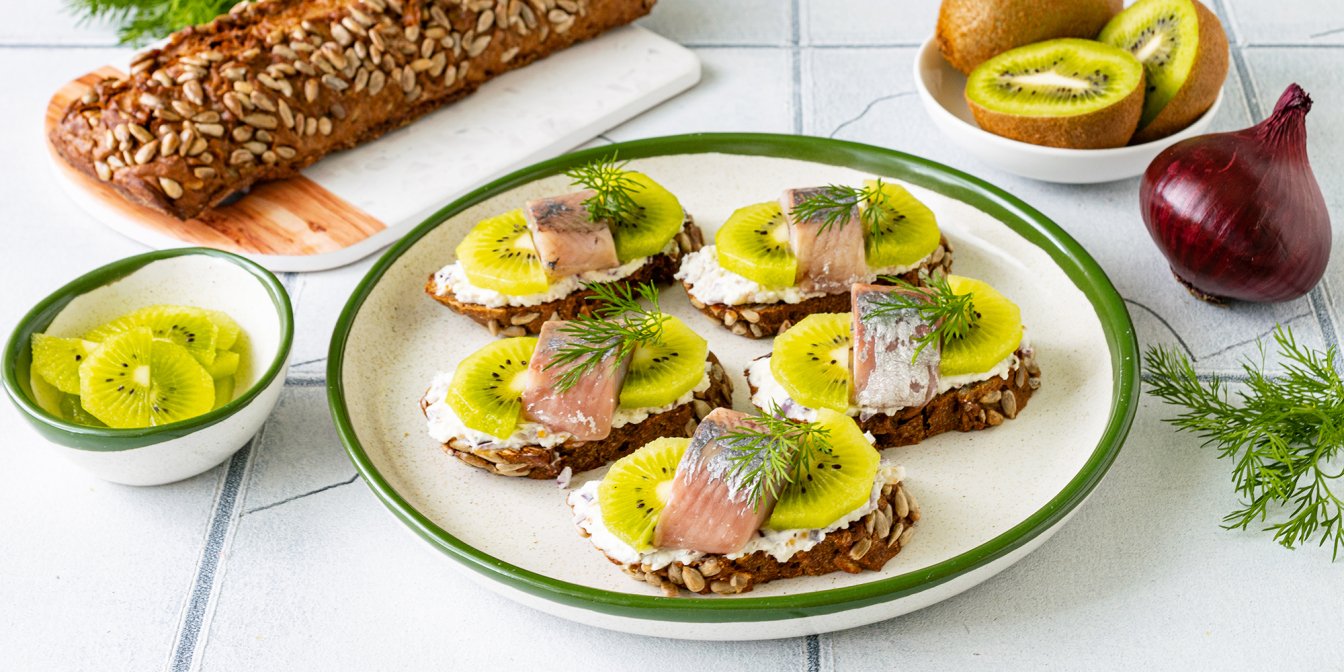Готуємо святкові брускети з ківі та слабосоленим оселедцем