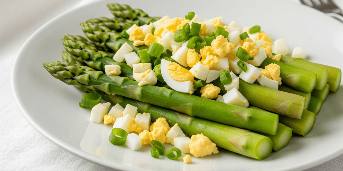 Відварена спаржа, заправлена пікантним соусом і прикрашена круто звареними яйцями — це проста сезонна страва. Її легко приготувати, і вона підходить для корисного перекусу або святкового гарніру.